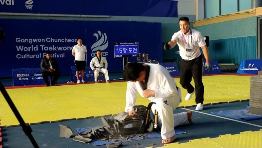 Afghan athlete Zabihullah Shahzad has won the gold medal in a concrete board-breaking international taekwondo competition in South Korea.