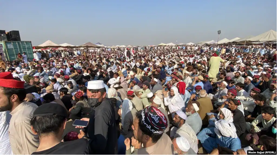 Images showed thousands of people gathered near the tents of the massive tribal assembly, chanting slogans against terrorism and chaos in the region.