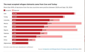 Much of the media coverage around asylum seekers has featured those who come to Canada from countries such as India, Haiti and Mexico. Around half the claims from these countries were accepted between January 2018 and Sept. 30, 2024.