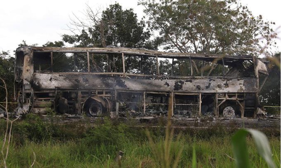 The bus carrying 48 passengers was traveling from Cancun to Tabasco and bodies of the most of the victims were burned after the vehicle caught fire.