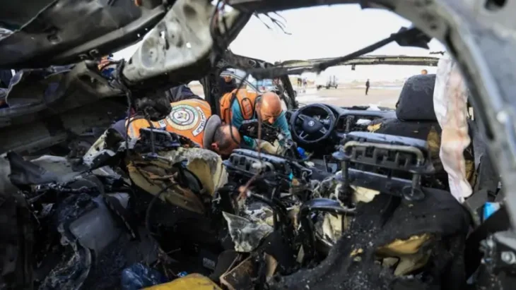 Palestinian media reported a total of five people were killed by a strike on a car traveling along the coastal Rashid road in Gaza City yesterday.