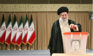 منبع نوشتهاست که علی خامنهیی، رهبر مذهبی ایران در نخستین دقایق آغاز رایگیری رای خود را به صندوق ریخت.