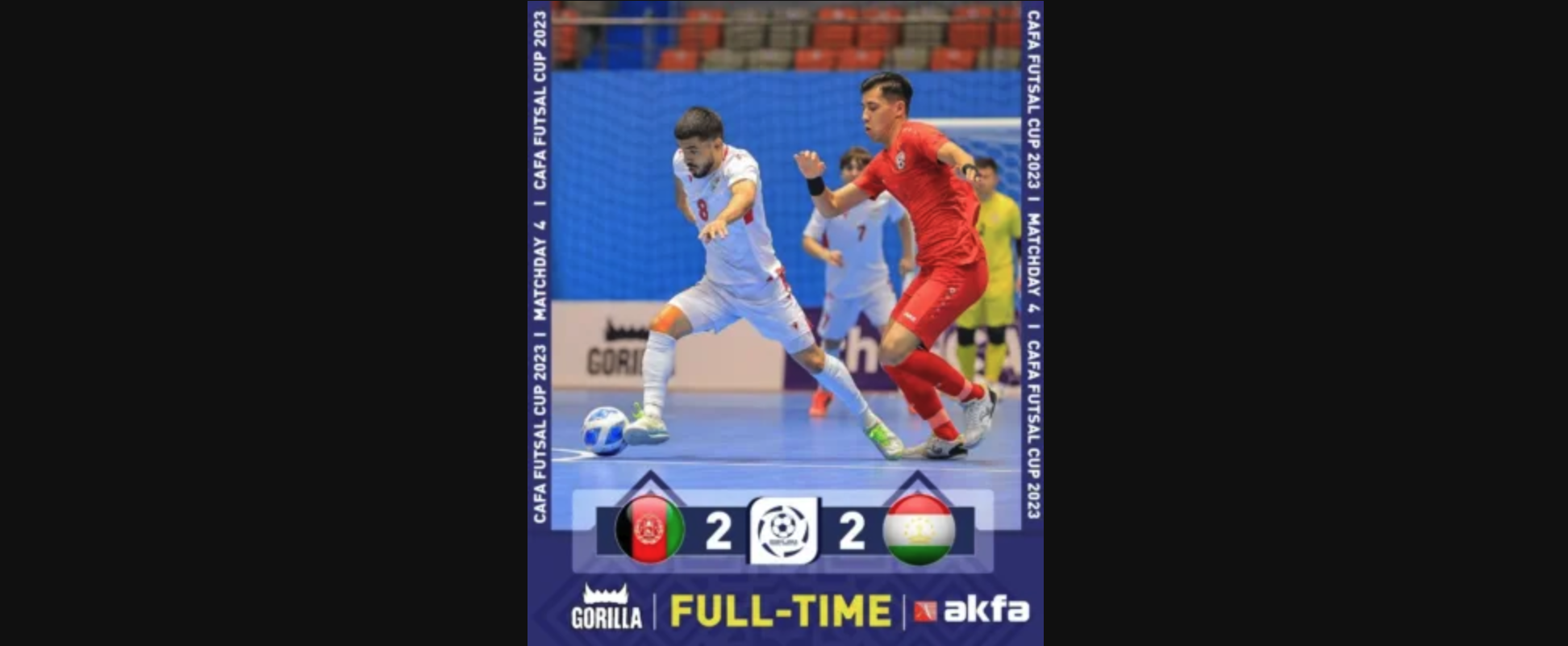 د مرکزي اسیا (کافا) فوټسال جام سیالیو په لړ کې د افغانستان او تاجکستان لوبه دوه په دوه مساوي شوه.