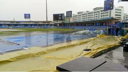 کرکټ بورډ ویلي، په همدې تړاو د تخنیکي کمېټې غړو او نورو اړوندو مسوولینو ترمنځ ناسته وشوه چې په پایله کې یې د لوبغالي د ډېر لوندوالي له امله نننۍ لوبه لغوه کړل شوه.