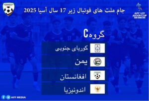 د افغانستان د فوټبال فدراسیون نن پر خپله فیسبوکپاڼه لیکلي، له ۱۷ کالونو د کمعمره فوټبال لوبډلو د اسیا د ملتونو جام سیالیو لپاره د لوبډلو ترمنځ پچهاچونه ترسره شوه چې افغان لوبډله په Cګروپ کې له یمن، سویلي کوریا او اندیونیزیا سره په یوه ګروپ کې راغله.