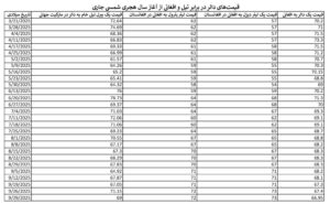 د یادونې ده، د سپټمبر په ۲۶مه په نړۍوال مارکېټ کې بیې لوړې او په ۲۹مه بېرته راټيټې شوي، خو په افغانستان کې په دې موده کې هم مخ په لوړېدو دي.