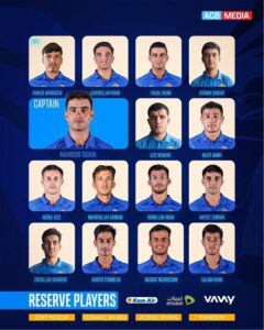 د دوی ترڅنګ عاقل خان، فهیم قاسمي، سهیل او عزت نور شیرزاد د احتیاطي لوبغاړو په توګه لوبډله کې شامل دي.